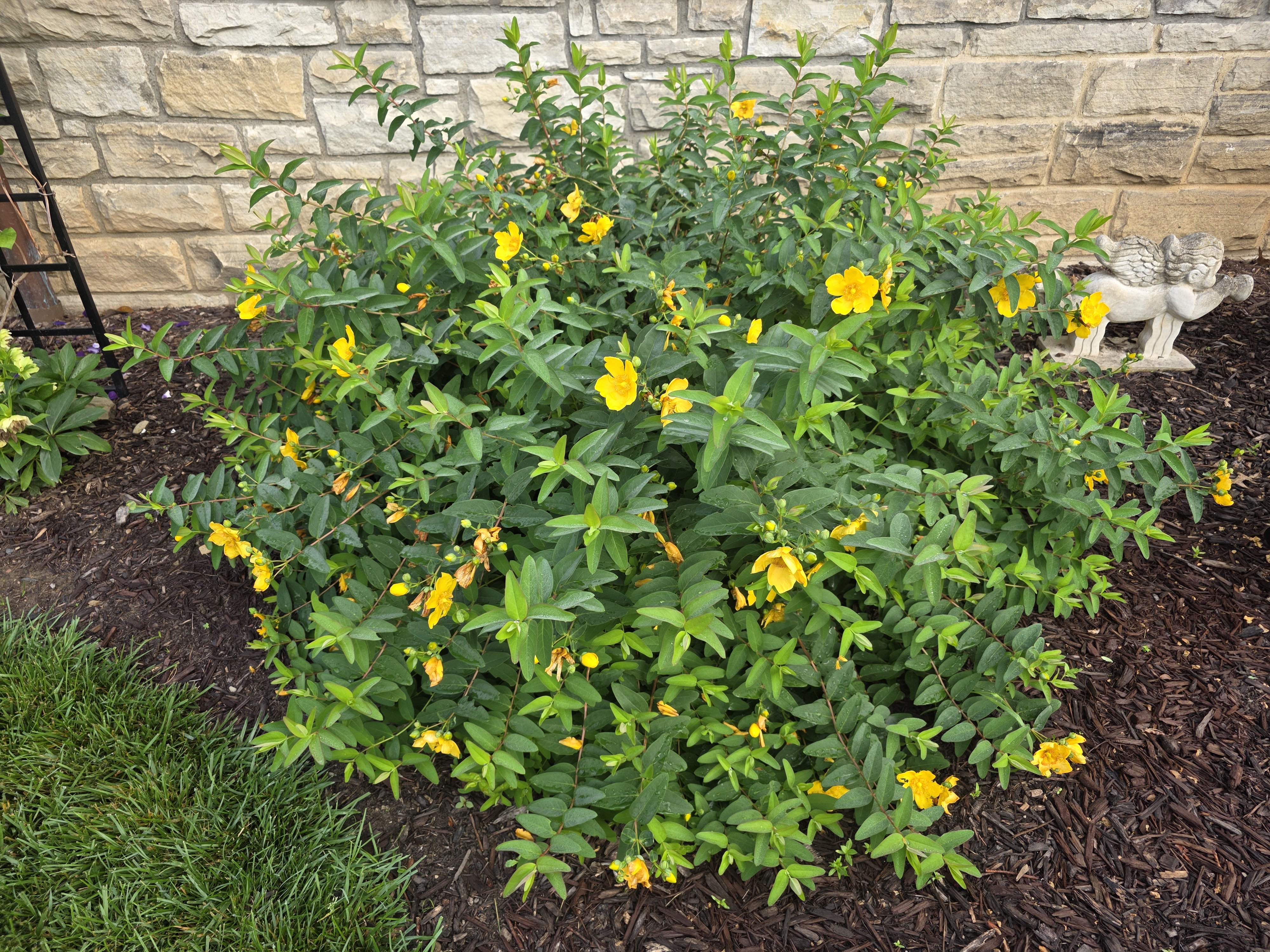 Hypericum hidcote (St. John's Wort). This is the shrub I cut out a one foot circumference from in early spring, and it has managed to still grow significantly.